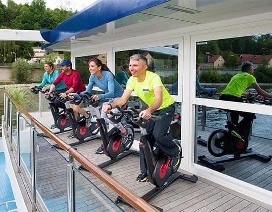 In addition to our wellness activities, our ships are equipped with a fleet of bicycles, a fitness room, whirlpool or swimming pool and a walking track. Spa massage rooms are also available to help relieve tension and a hydration station with infused citrus and gemstone water helps cleanse the body of toxins.